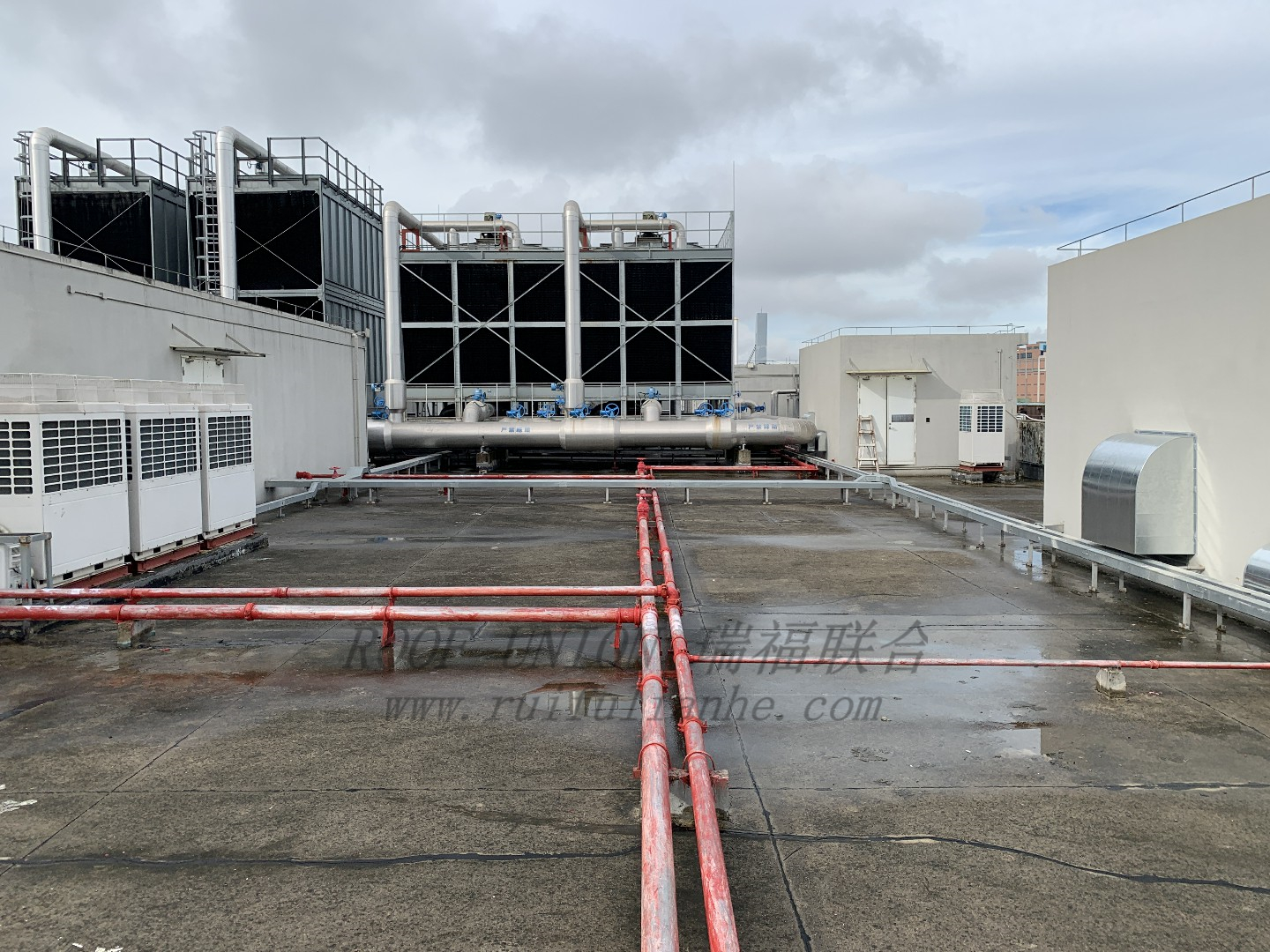 3. 屋面系统开挖重建防水体系,根据我公司现场勘察,此混凝土屋面无法进行开挖施工,屋面存在数量众多的设备、设施,开挖必先要合理处置屋面设备而不影响设备的正常运作,且开挖施工将耗费巨额的人力物力,后续原有设备的安装也存在较大的防水问题。