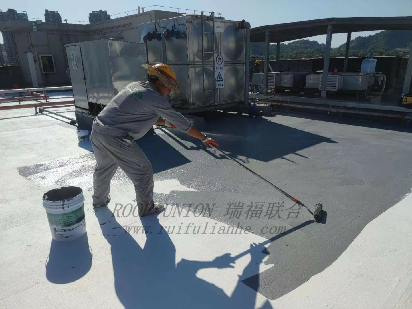 1. 瑞福联合柔性防水系统针对屋面众多转角、折边、设备底座等能完美贴合,干燥后形成一个无缝的防水体系,彻底解决漏水难题。