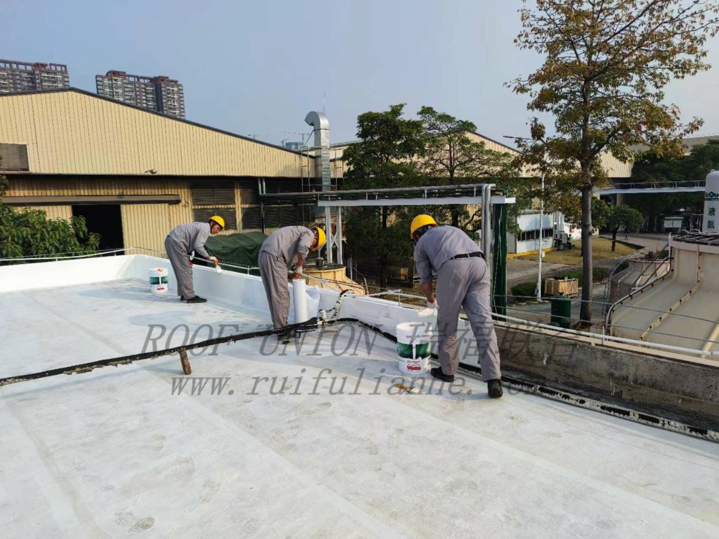 1. 瑞福联合柔性防水系统针对屋面众多转角、折边、设备底座等能完美贴合,干燥后形成一个无缝的防水体系,彻底解决漏水难题。