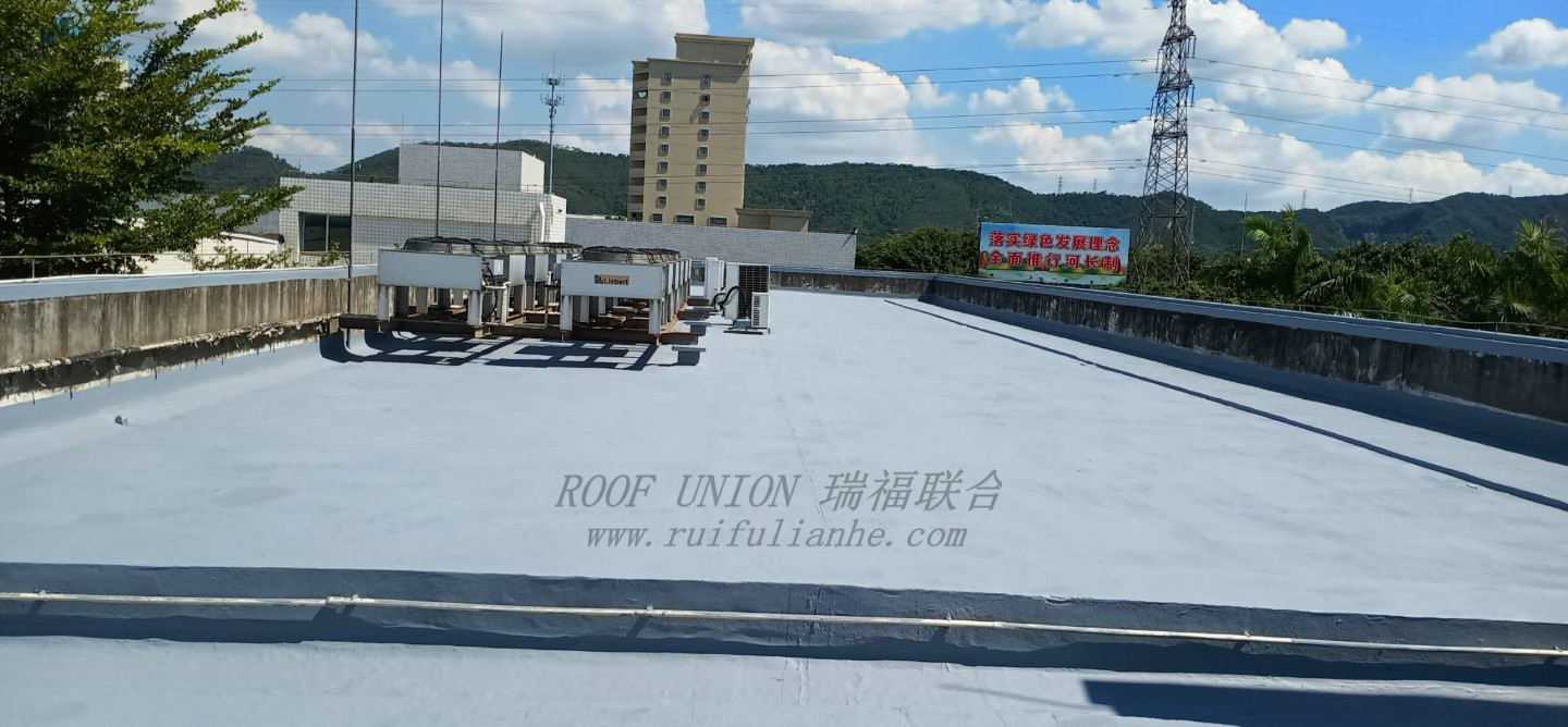 1. 瑞福联合柔性防水系统针对屋面众多转角、折边、设备底座等能完美贴合,干燥后形成一个无缝的防水体系,彻底解决漏水难题。