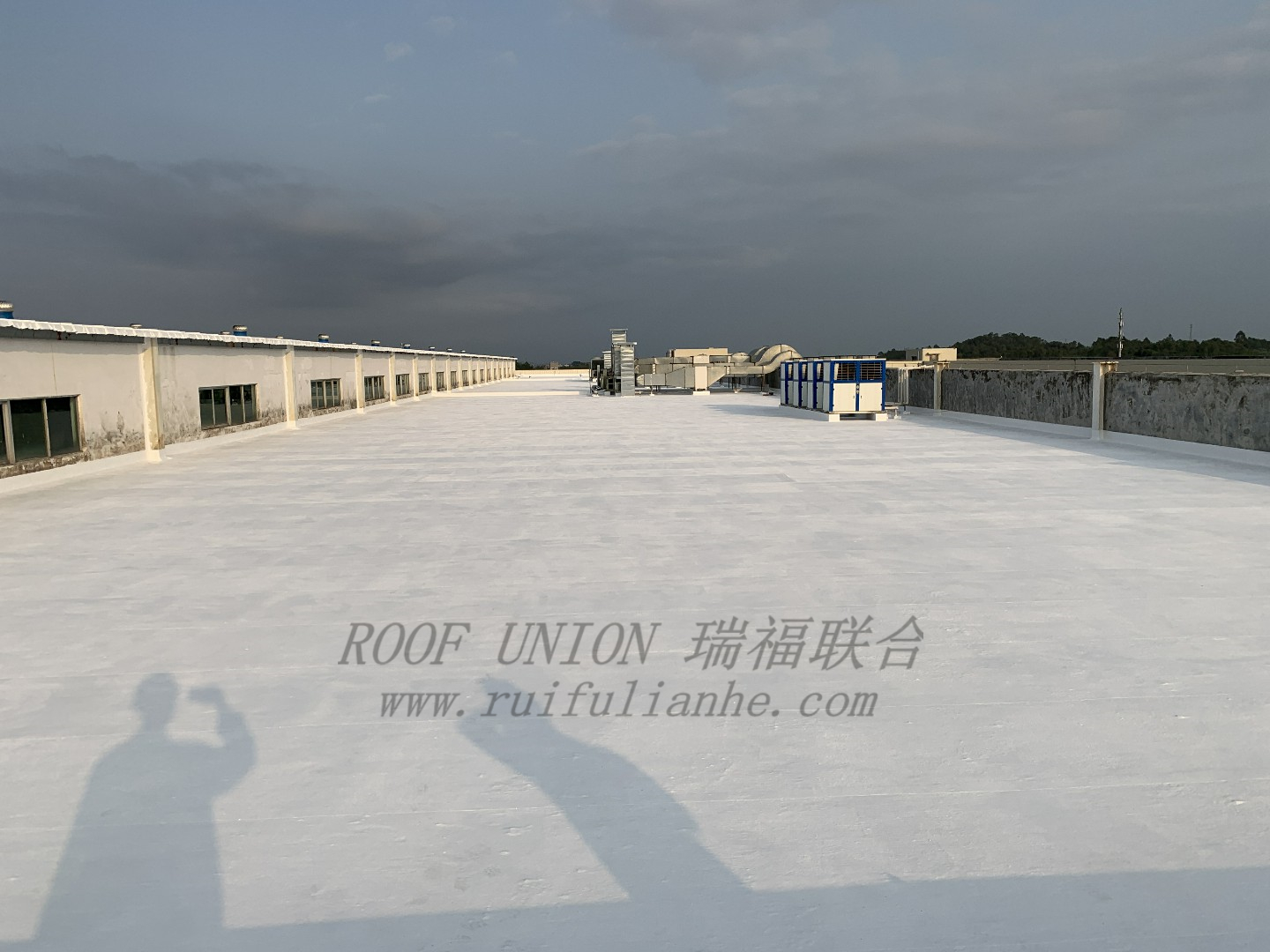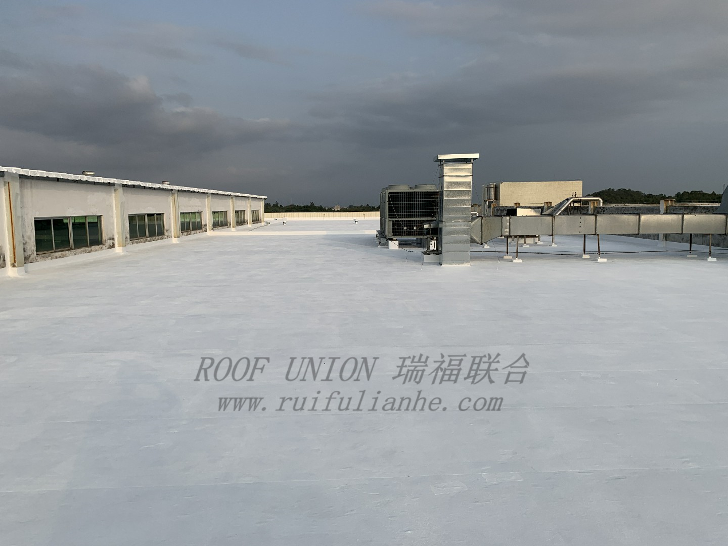 1. 瑞福联合柔性防水系统针对屋面众多转角、折边、设备底座等能完美贴合,干燥后形成一个无缝的防水体系,彻底解决漏水难题。