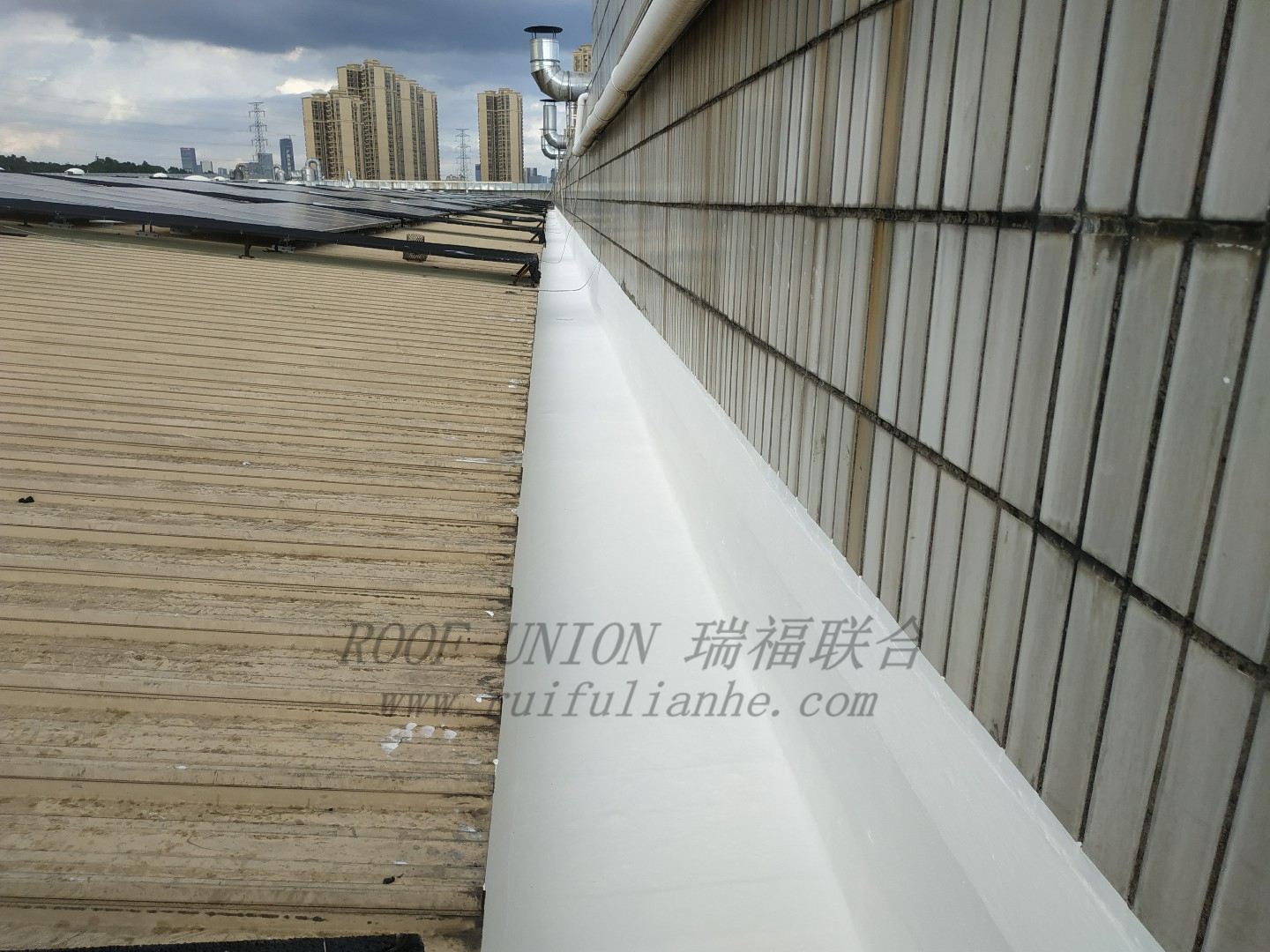 我公司采用的钢构屋面柔性防水工艺——瑞福联合“四涂一布”工艺,源自美国市场,所采用的金属屋面专用弹性防水涂料,是瑞福联合公司自主研发的高端防水涂料产品,产品核心配方源自美国陶氏集团,采用的乳液和助剂也来自于美国陶氏、德国巴斯夫、美国伊士曼、比利时索尔维等国际一线化工品牌,确保了防水材料的高品质及高性能。