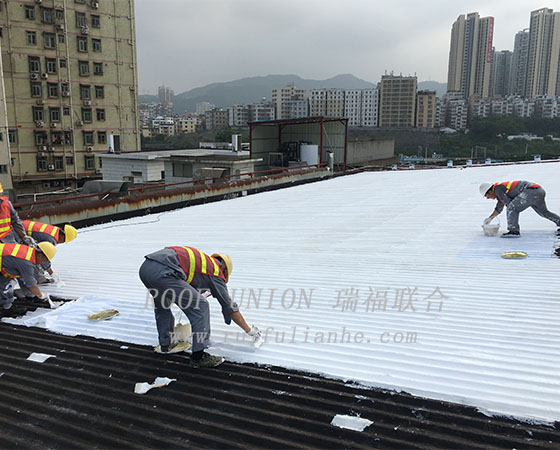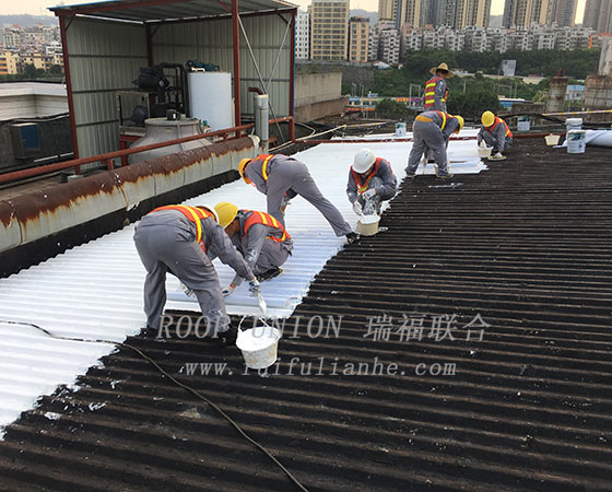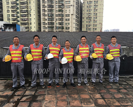 4. 瑞福联合公司8名防水施工团队经过接近20天的努力,最终圆满的完成了3900平方米防水工程,让原本千疮百孔的厂房屋面焕然一新,在解决了防水难题后,还有一定的降温隔热功能,为客户提供了额外的工程附加价值。